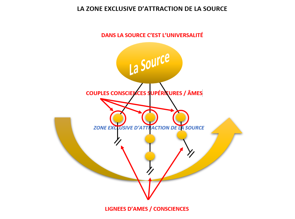 Il existe une zone d’attraction que je qualifie d’exclusive, près de la Source. L’Ombre ne peut pas accéder à celle-ci tant le rayonnement de la Source est puissant. C’est dans cette partie qu’évoluent des âmes et des consciences que je qualifie de « supérieures ».